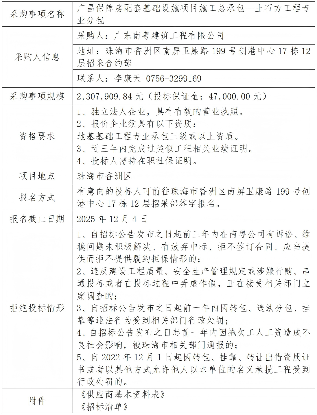 廣昌保障房配套基礎設施項目施工總承包--土石方工程專業(yè)分包 專欄:工程招標 發(fā)布日期: 2025-12-01 作者:招采管理中心 附件:供應商基本資料表 附件:廣昌保障房配套基礎設施項目施工總承包--土石方工程專業(yè)分包- 空白清單 返回列表 上一篇:廣昌保障房配套基礎設施項目施工總承包-食堂服務 下一篇:廣昌保障房配套基礎設施項目施工總承包-地材材料采購招標