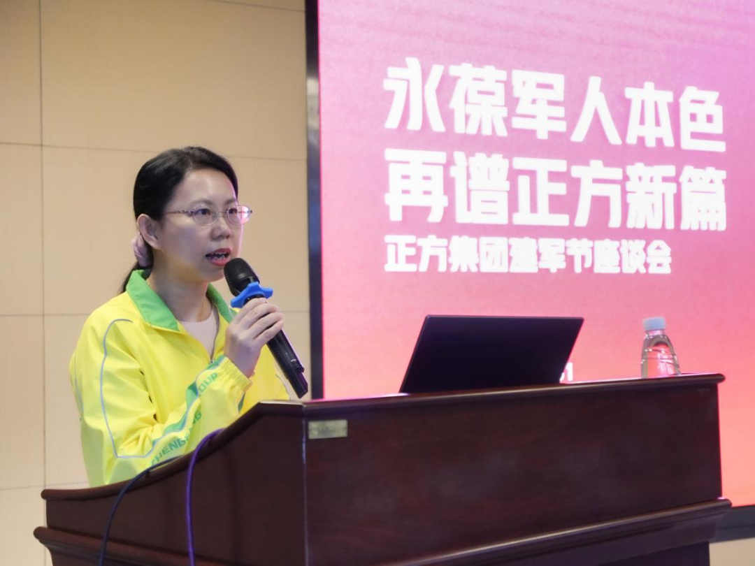 正方集團黨委委員、總經(jīng)理助理、工會聯(lián)合會主席黃少蘭出席本次活動,并為活動致辭。黃少蘭表示,中國人民解放軍是我們黨締造和領導的人民軍隊,是維護政治穩(wěn)定、經(jīng)濟發(fā)展、民族團結(jié)、社會進步的重要保障。正方全體退伍軍人職工在退伍后轉(zhuǎn)業(yè)不轉(zhuǎn)志,退伍不褪色,立足本職崗位作奉獻,為全公司員工做出了榜樣,值得大家學習。