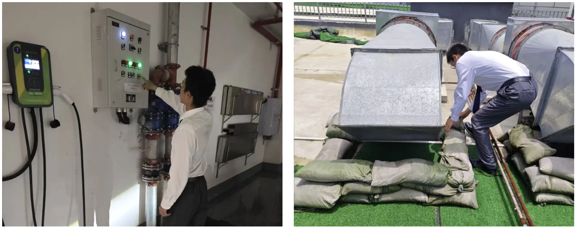 在情侶路沿線運營商圈迅速開展排水口清掏清理,大型玻璃與廣告牌加固,發(fā)電機、抽水泵等防汛設(shè)備測試等工作,確保防風排水設(shè)施良好,應(yīng)急物資充足。
