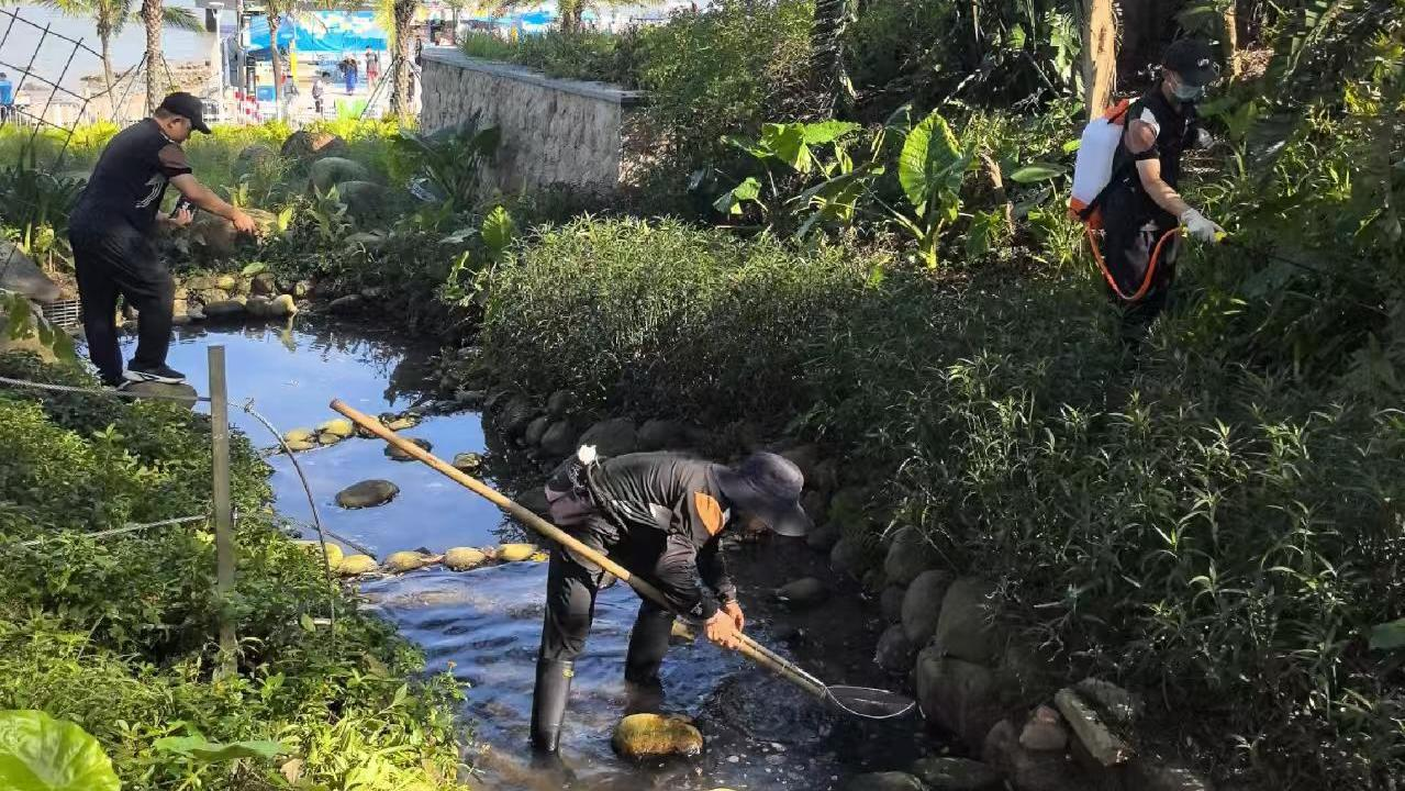 全面開展蚊蟲消殺與積水清理工作,加強戶外廣場、休息區(qū)等人員活動區(qū)域的成蚊消殺力度,細致排查清理景觀花盆底座、空調(diào)外機位、排水口等易積水部位,確保公共環(huán)境干燥整潔。