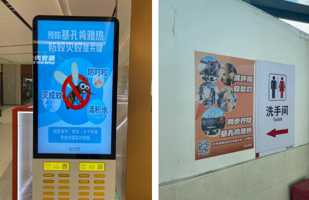 在推進環(huán)境整治的同時,正方集團積極拓展宣傳渠道,在管養(yǎng)公園、運營商圈等重點公共場所,通過張貼防蚊標語、電子屏滾動播放防蚊公益海報等方式,廣泛宣傳蚊媒傳染病危害與防護要點,普及“清積水、防孳生”等核心知識,切實增強市民自我防護意識和能力。