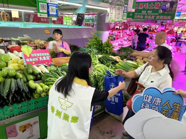 禁毒宣傳“進市場”活動,以群眾“菜籃子”為載體,通過詼諧有趣的標語,將禁毒知識裝進群眾的心中,增強廣大群眾識毒、防毒、拒毒意識和能力,營造全民禁毒濃厚氛圍。
