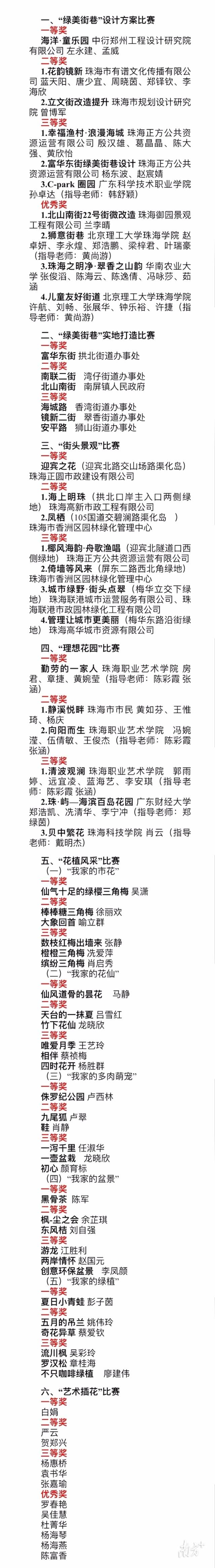 附:珠海市香洲區(qū)首屆園藝景觀大賽獲獎名單