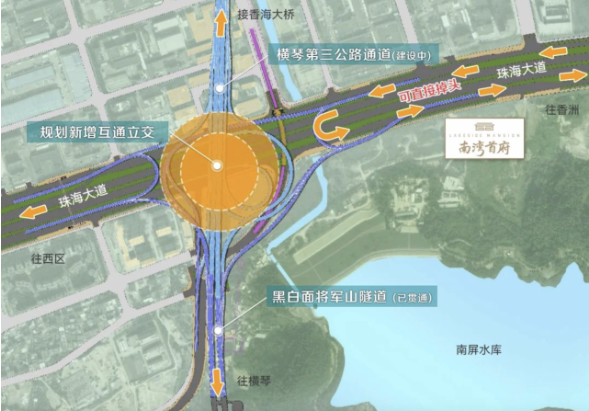 此外,“橫琴第三公路通道”還計劃在珠海大道南屏水庫段建設(shè)一個新的十字互通立交,從橫琴向北經(jīng)黑白面將軍山隧道穿山直通南灣,大大縮短了橫琴至南灣的距離,使南灣真正成為東西向和南北向大動脈的交匯之地。一上立交,就能快速直通珠海東西南北各核心組團,并快速連接市外高快速路網(wǎng)。