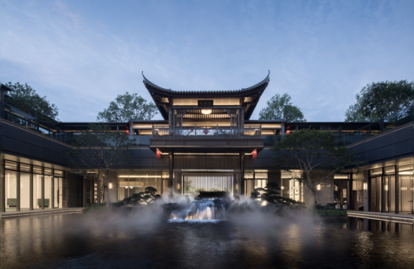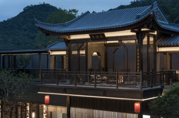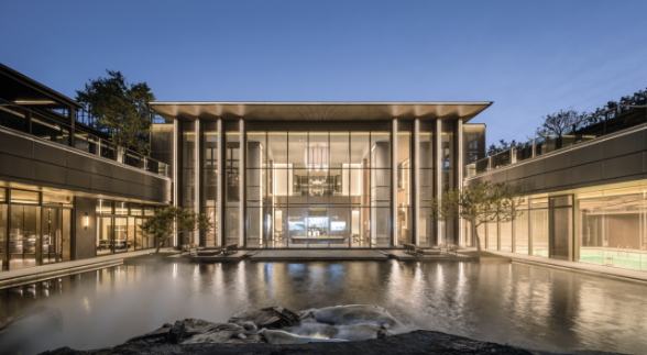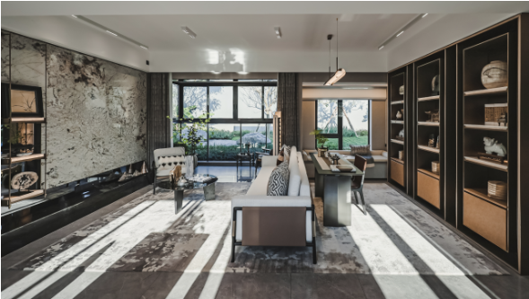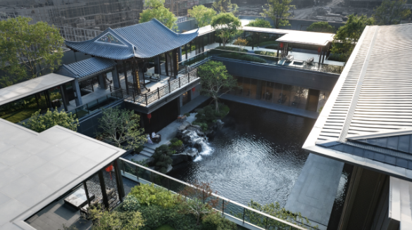 沿襲中華傳統(tǒng)建筑的歸家禮序,項目采用了五進院的建筑規(guī)格和標(biāo)準(zhǔn),從社區(qū)主入口行至內(nèi)部,匠心可謂滲透在每一寸細(xì)節(jié)之中。率先亮相的是由傳統(tǒng)嶺南建筑演變而來的長達(dá)80米的壯闊門樓,雙重屋檐的設(shè)計融合現(xiàn)代元素,沉穩(wěn)而大氣。漫步進入星級入戶大堂,目之所及皆是風(fēng)景。