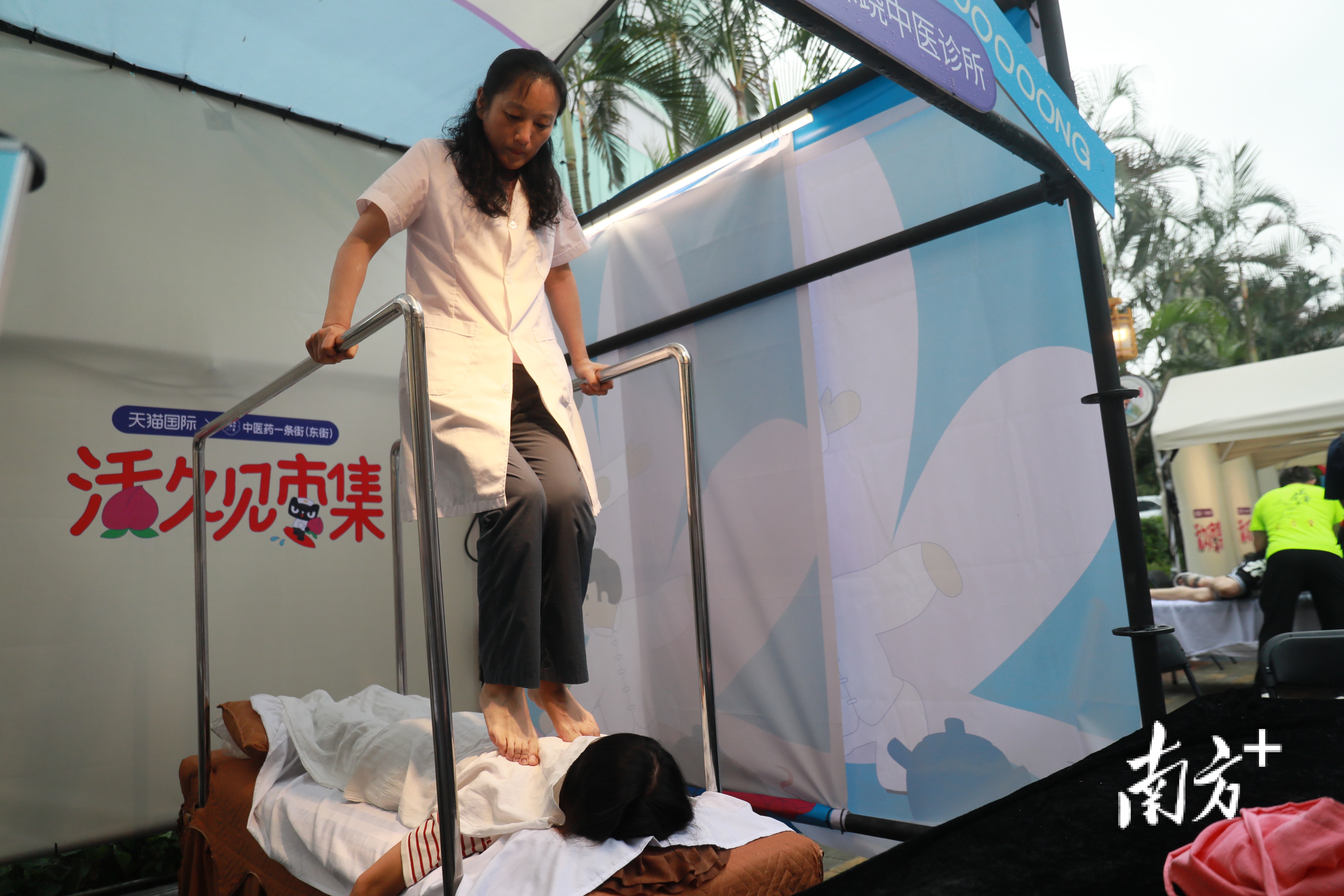在“中醫(yī)藥一條街”(東街)啟用當(dāng)天,珠海也在此舉辦了“年輕人自己的健康廟會”,為市民提供特色中醫(yī)診療服務(wù)?;顒友埖綇V東省中醫(yī)院珠海醫(yī)院的名醫(yī)專家為市民提供中醫(yī)義診、中醫(yī)藥知識科普,以及舒筋祛痛、安神助眠、悅顏養(yǎng)膚等非遺特色療法體驗服務(wù)。