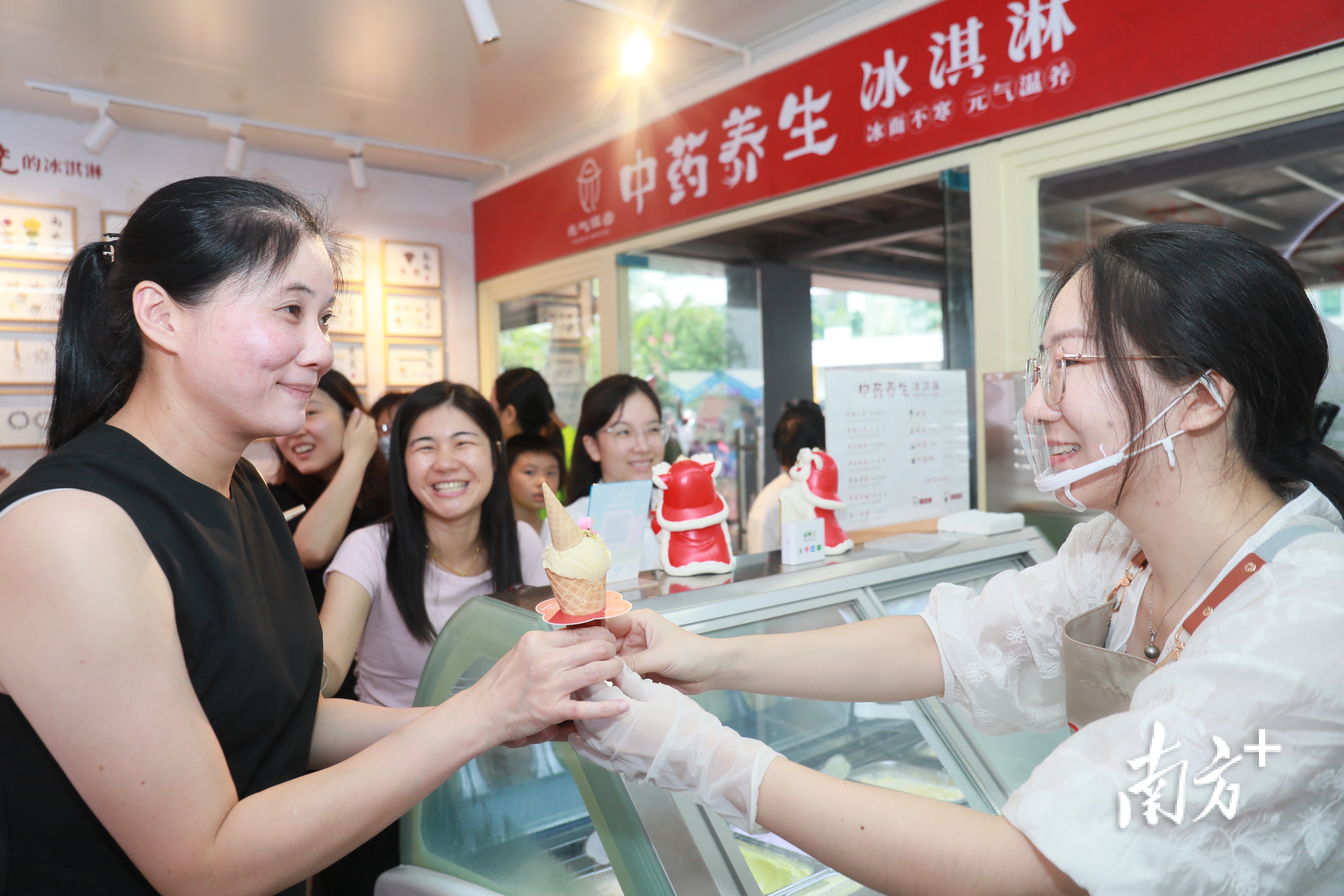 在嶺南十八味館,市民可以買到廣陳皮、春砂仁、化橘紅等藥材;“草本輕養(yǎng)茶”代替奶茶成為年輕人的逛街搭子;中藥養(yǎng)生冰淇淋店內(nèi),九層塔、小黃姜、古法醬油等口味的冰淇淋吸引了許多目光……