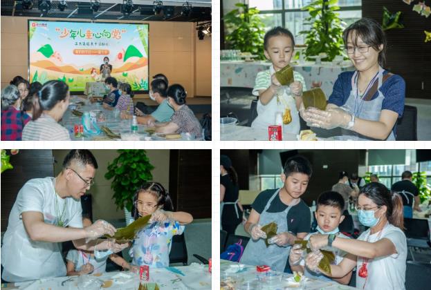 在制作粽子前,大家通過生動有趣的視頻了解了端午節(jié)的由來和習(xí)俗,并熱情地參與有獎問答環(huán)節(jié)。小朋友們爭先恐后地舉手、搶答現(xiàn)場主持人提出的問題,現(xiàn)場氣氛十分活躍有趣。