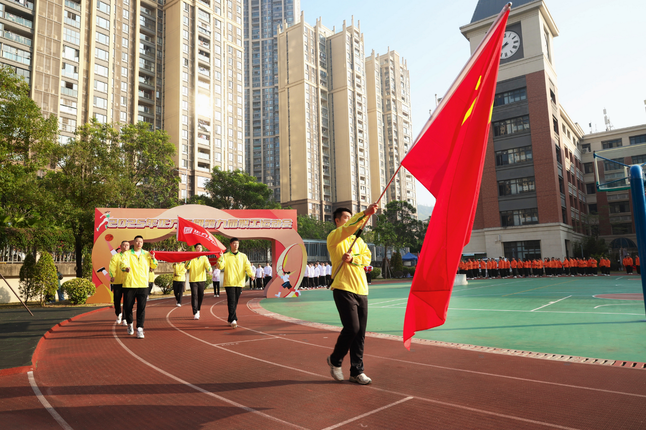 運動(dòng)會(huì )在激昂的旋律中拉開(kāi)帷幕。護旗手們氣宇軒昂、步伐鏗鏘,莊嚴護送五星紅旗前行,彰顯正方人昂揚向上的精神風(fēng)貌。