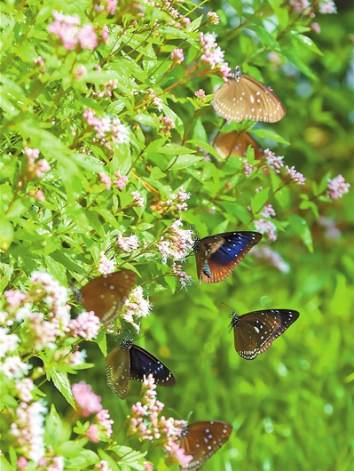 恰好是南國溫暖濕潤的風(fēng),輕輕拂過(guò)香山湖畔,蘊藏著(zhù)熱烈奔放的氣息。瞧,那是只藍點(diǎn)紫斑蝶,它舞姿輕盈,自在翩躚,黑褐色的翅膀上泛著(zhù)點(diǎn)點(diǎn)異彩。只有屏息駐足時(shí),才能瞥見(jiàn)瑰麗優(yōu)雅的紫藍色光澤。