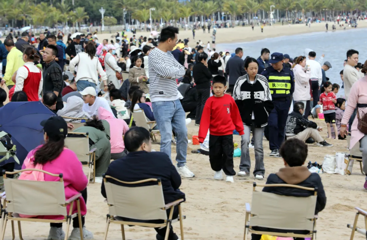 為加強游客安全保障和對流動(dòng)攤販的勸導,正方集團在保證自有安保隊伍力量的基礎上,另聘請了50名專(zhuān)業(yè)安保人員,聯(lián)動(dòng)執法部門(mén)共同開(kāi)展流動(dòng)攤販整治,亂擺亂賣(mài)情況得到明顯改善,情侶路沿線(xiàn)沙灘每天投入超過(guò)400名工作人員做好服務(wù)保障。