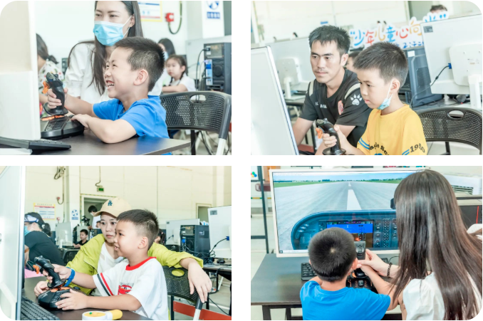 隨后,進(jìn)入到了航天知識分享和模擬器實(shí)踐操作環(huán)節,資深的專(zhuān)業(yè)航空講師不僅給孩子們分享航空知識,還介紹了模擬器的綜合儀表,導航儀表、油門(mén)、操縱桿等結構及其操作方式,小朋友們一邊認真地學(xué)習基本原理,一邊按照航空講師的步驟操作,完全沉浸在飛行模擬器、航模模擬器的現場(chǎng)實(shí)操中。“我也想開(kāi)飛機在天上飛!”一個(gè)孩子興奮地對媽媽說(shuō)道。