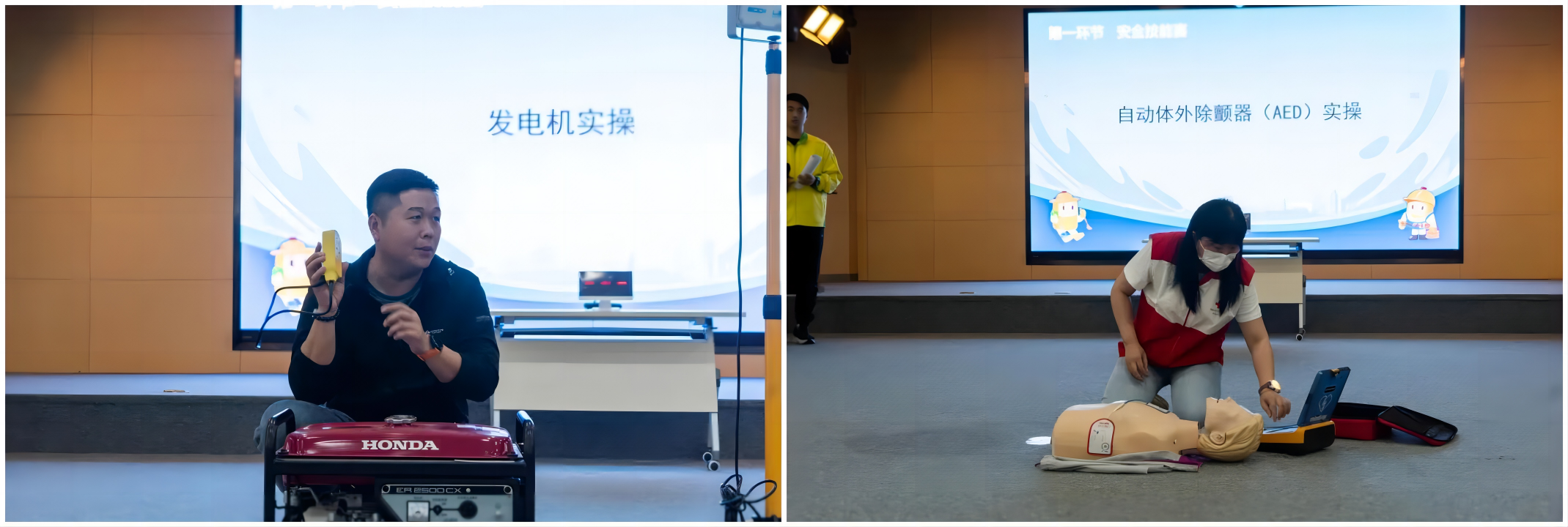 競賽活動(dòng)設置了自動(dòng)體外除顫器(AED)使用和發(fā)電機啟動(dòng)的安全技能實(shí)操,AED使用展示等環(huán)節。珠海市紅十字會(huì )救護培訓老師鄭玲玲對隊員的實(shí)操表現給予了充分肯定,并在現場(chǎng)示范了規范的操作流程;應急倉庫管理員梁亞詳細講解了發(fā)電機啟動(dòng)的操作要求,有效提高了隊員的實(shí)操水平。