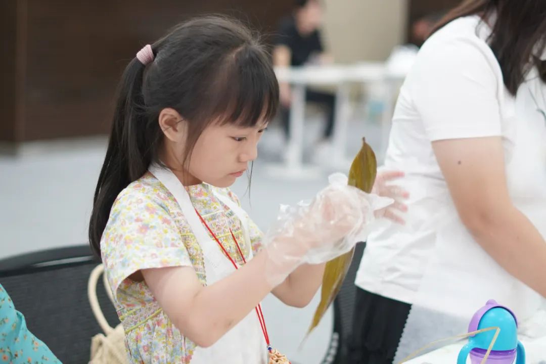 本次活動(dòng)加入了端午節元素,讓孩子們在游戲的同時(shí)更多了解中國傳統文化。小朋友們在老師的帶領(lǐng)下學(xué)習如何包粽子,折粽葉、裝糯米、放餡料、裹扎繩,一只只粽子就此成型,大家看著(zhù)自己的勞動(dòng)成果樂(lè )不可支,雖然粽子的形狀五花八門(mén),但每個(gè)人心里都充滿(mǎn)了成就感。